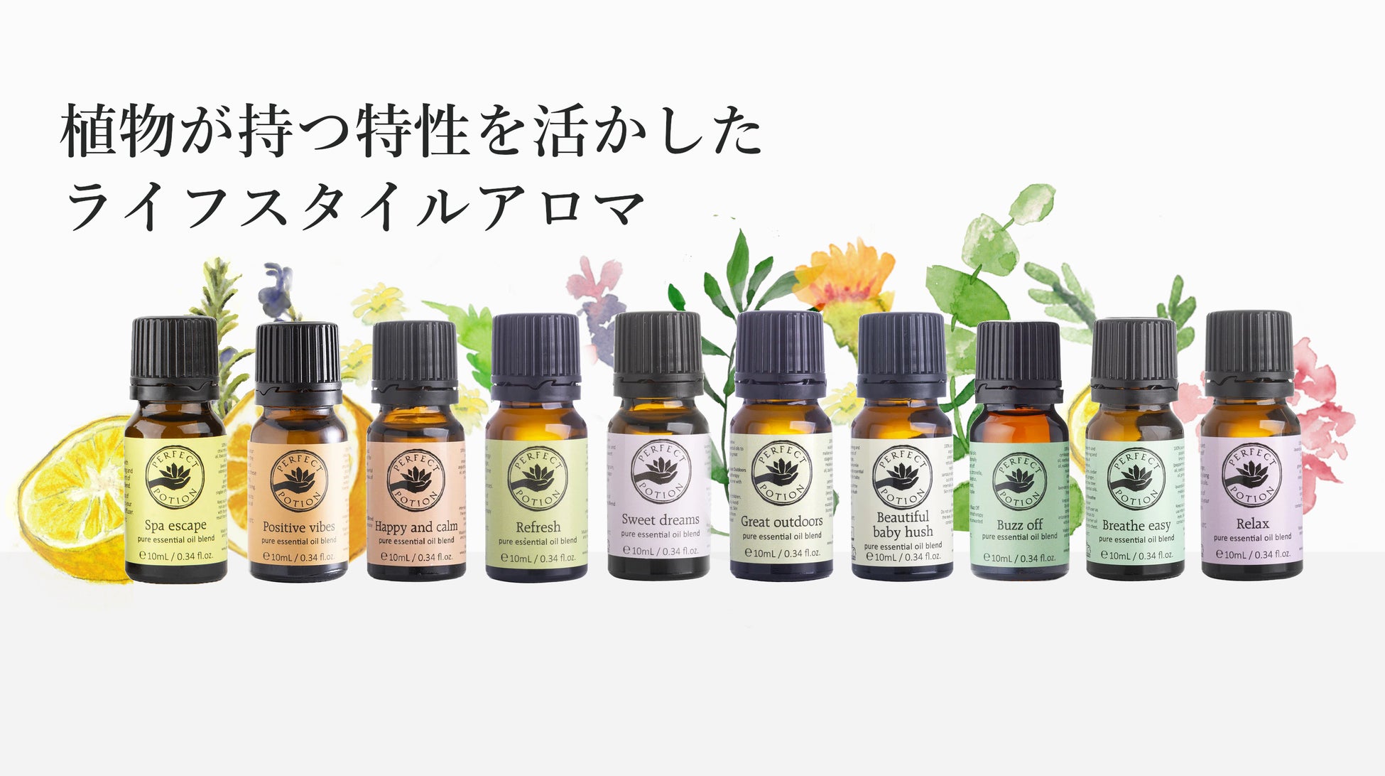 パーフェクトポーションの製品は、植物が生まれ育った土壌や栽培方法にまでこだわり、持続可能性、環境保全へも配慮しながら世界各国から厳選したエッセンシャルオイルや植物エキスなどを配合し、太陽光パネルが設置された自社工場で一品ずつ大切に人の手によって作られています。