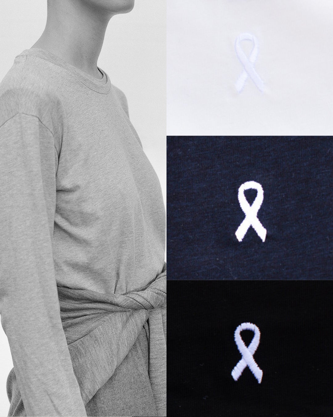 世界中の誰にも似合う、ベーシックで洗練された長袖Tシャツの背中部分に、ホワイトリボン刺繍がさりげなくワンポイントで施されたジョイセフチャリティショップオリジナルのアイテム。