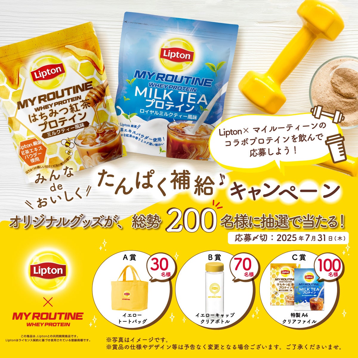マイルーティーン×リプトン初のコラボプロテインの発売を記念し、「みんなdeおいしくたんぱく補給」キャンペーン5月10日(土) ~ 7月31日(木)まで。