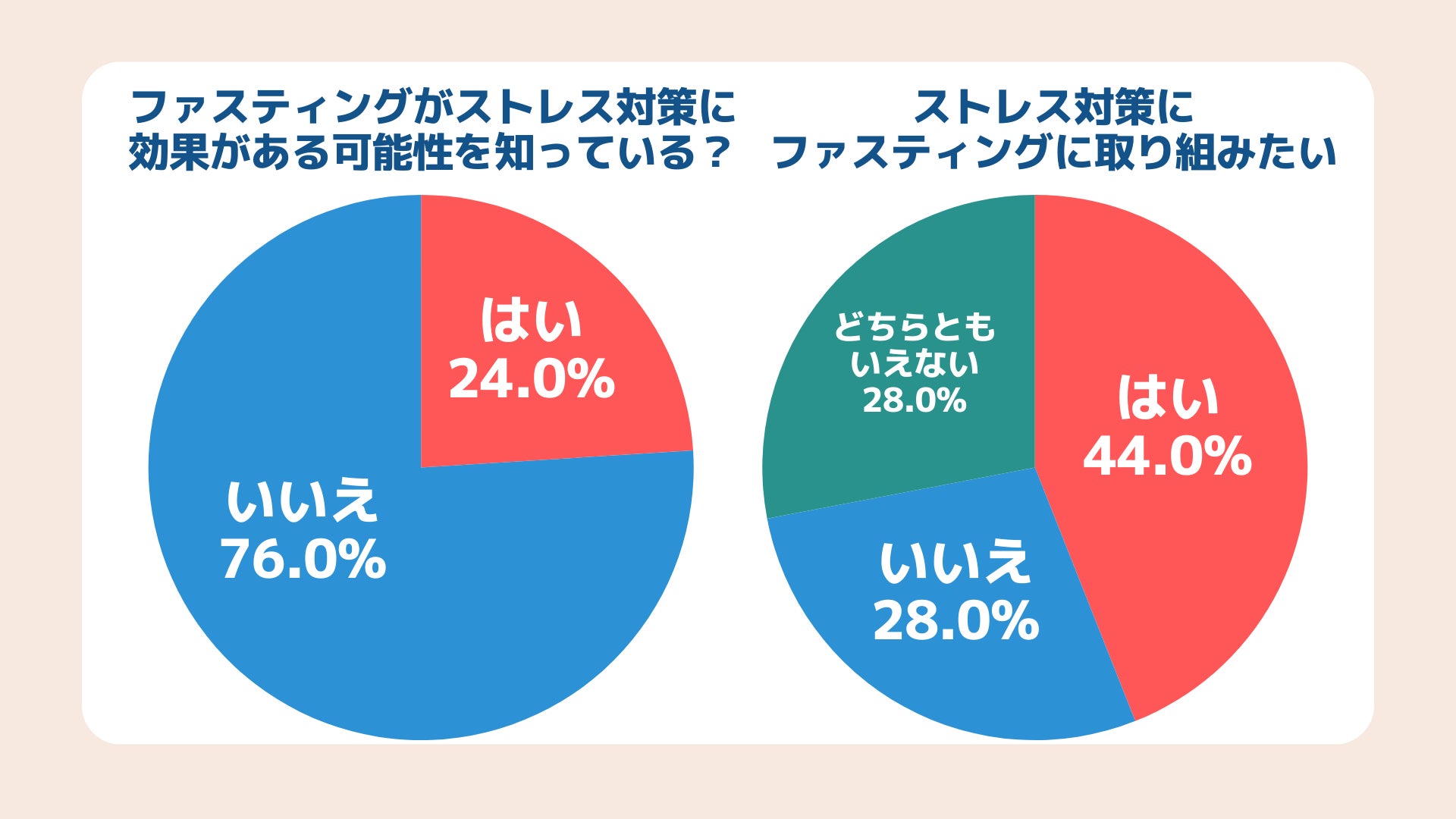 ファスティングは腸内環境を整えたり、体をリセットするイメージが強いため、多くの人がストレス対策に効果がある可能性を知らなかったのかと推察できます。