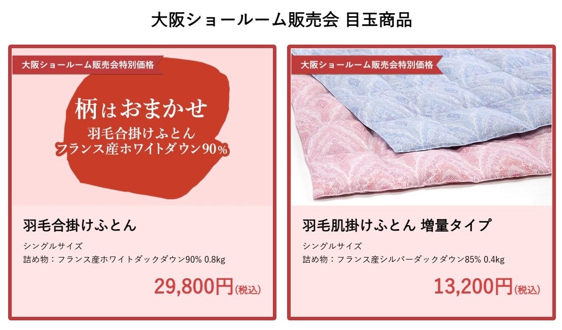 【昭和西川大阪ショールーム販売会概要】 <4日間限定>