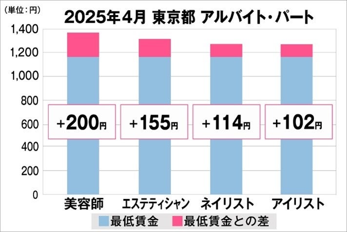 東京都の美容業界における採用時給料に関する調査結果(アルバイト・パート)2025年4月美プロ調べ