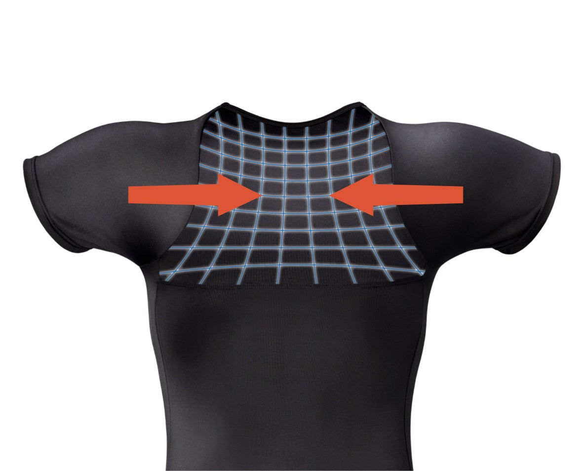 後ろ身ごろ上部に配置されたパワーネットで肩甲骨を内側へ。