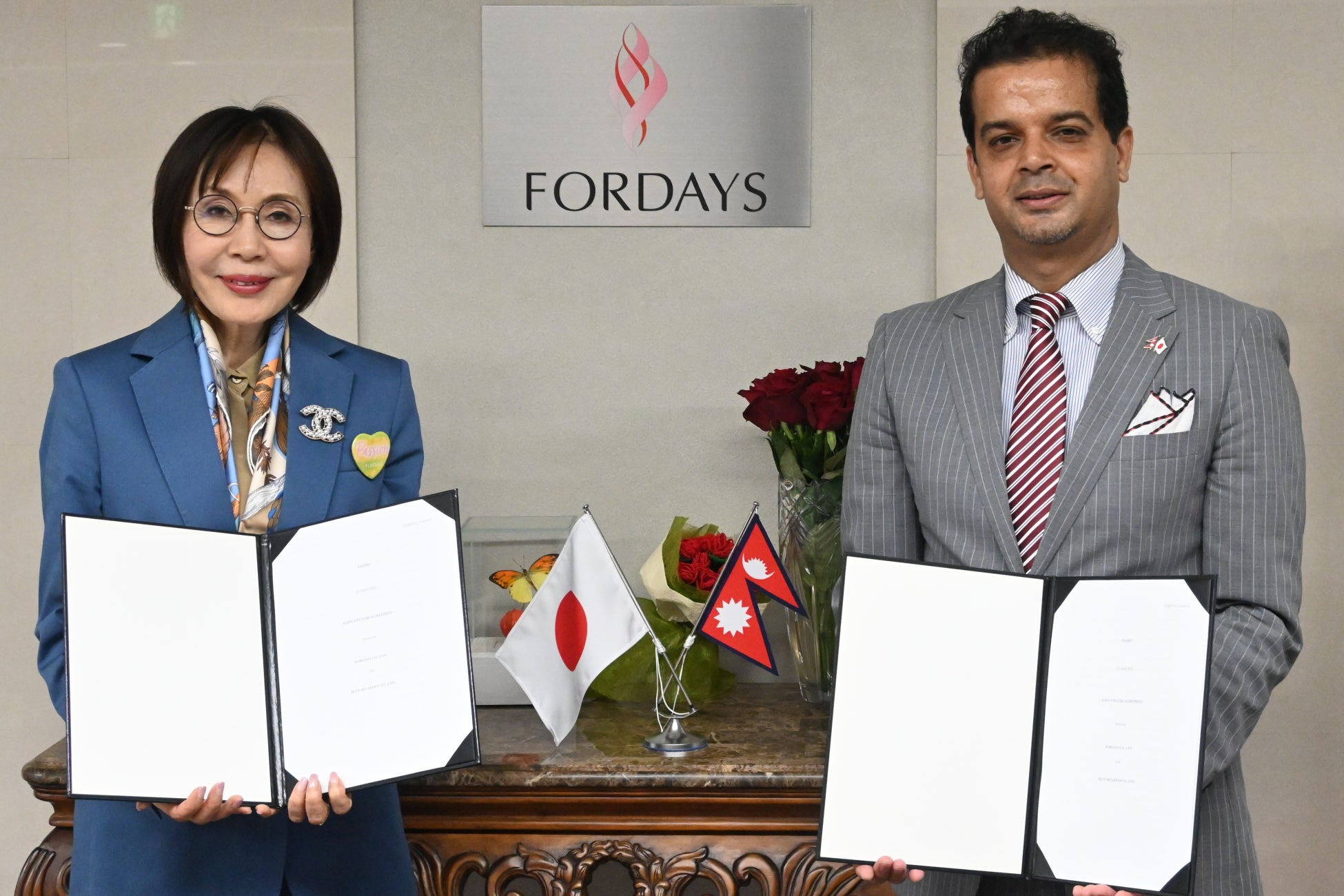 核酸*1栄養の健康食品および化粧品を販売するフォーデイズ株式会社(本社:東京都中央区、代表取締役:和田佳子)は、BLUE SKY JAPAN株式会社(本社:東京都千代田区、代表取締役:Poudel Santosh、取締役:Prem Bahadur Katuwal、https://blueskyjpn.com/ 以下「BLUE SKY JAPAN」)と合弁会社の設立に関する調印式を実施し、ネパール初*2となる介護および外食業における日本入国前トレーニングセンター「FORDAYS SSW Training Center」をカトマンズに設立いたします。