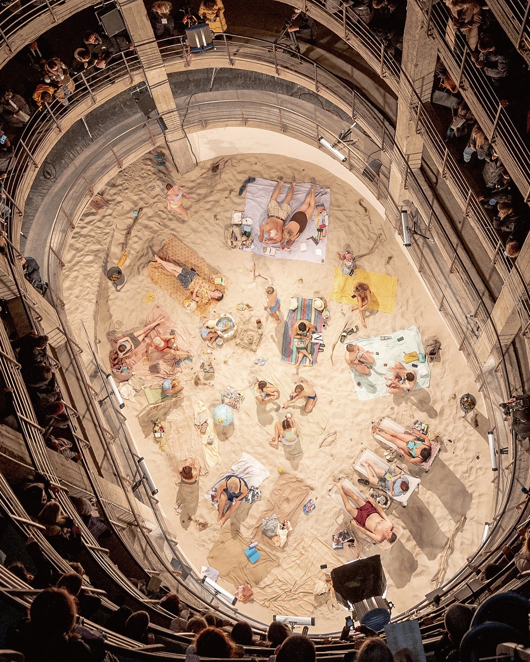 “Sun & Sea (サン&シー)”は、光、建築、音楽が融合した独創的な舞台の上で、“終わらない夏の日のビーチ”をミュージカル形式で表現した作品だ。実際のビーチのように具現された舞台の上で、平凡なバカンス客の日常が歌と共に繰り広げられ、独白はひとつの合唱へと広がっていきながら舞台を越え、観客の内面を深く振り下げる。ループ形式で構成されたこの公演は、1時間単位で観客が循環する形で続き、観客は舞台の下ではなく上階から見下ろす“太陽の視線”とも言える視点で公演を鑑賞するのが特徴である。