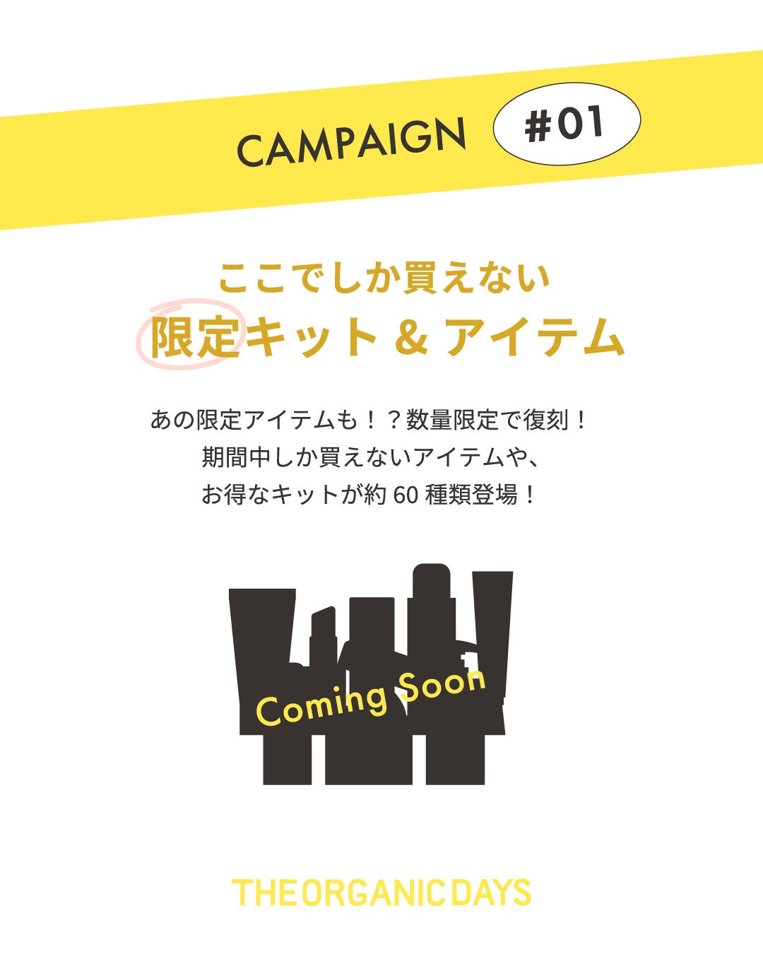 オーガニックデイズ限定アイテムや、お得なキットが約60種類登場!詳細情報は順次コスメキッチン公式WEB STOREの特設ページにて解禁予定。