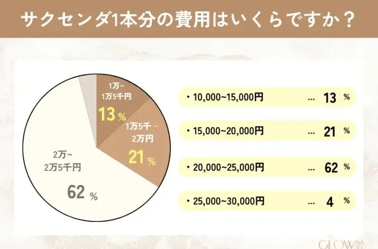 • サクセンダ1本分の費用は20,000円以上~25,000円未満と答えた人が最も多い