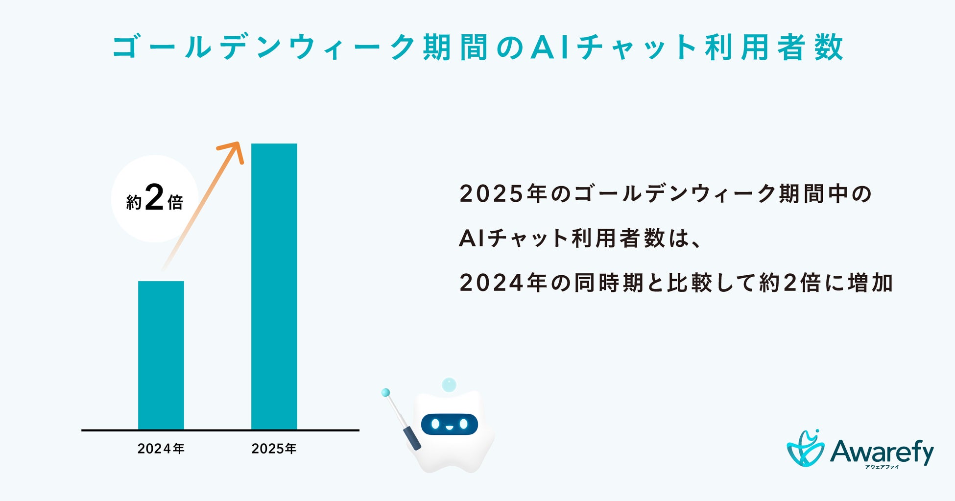 AIへの相談件数は、昨年比約2倍。セルフケア行動の広がりを感じる結果。