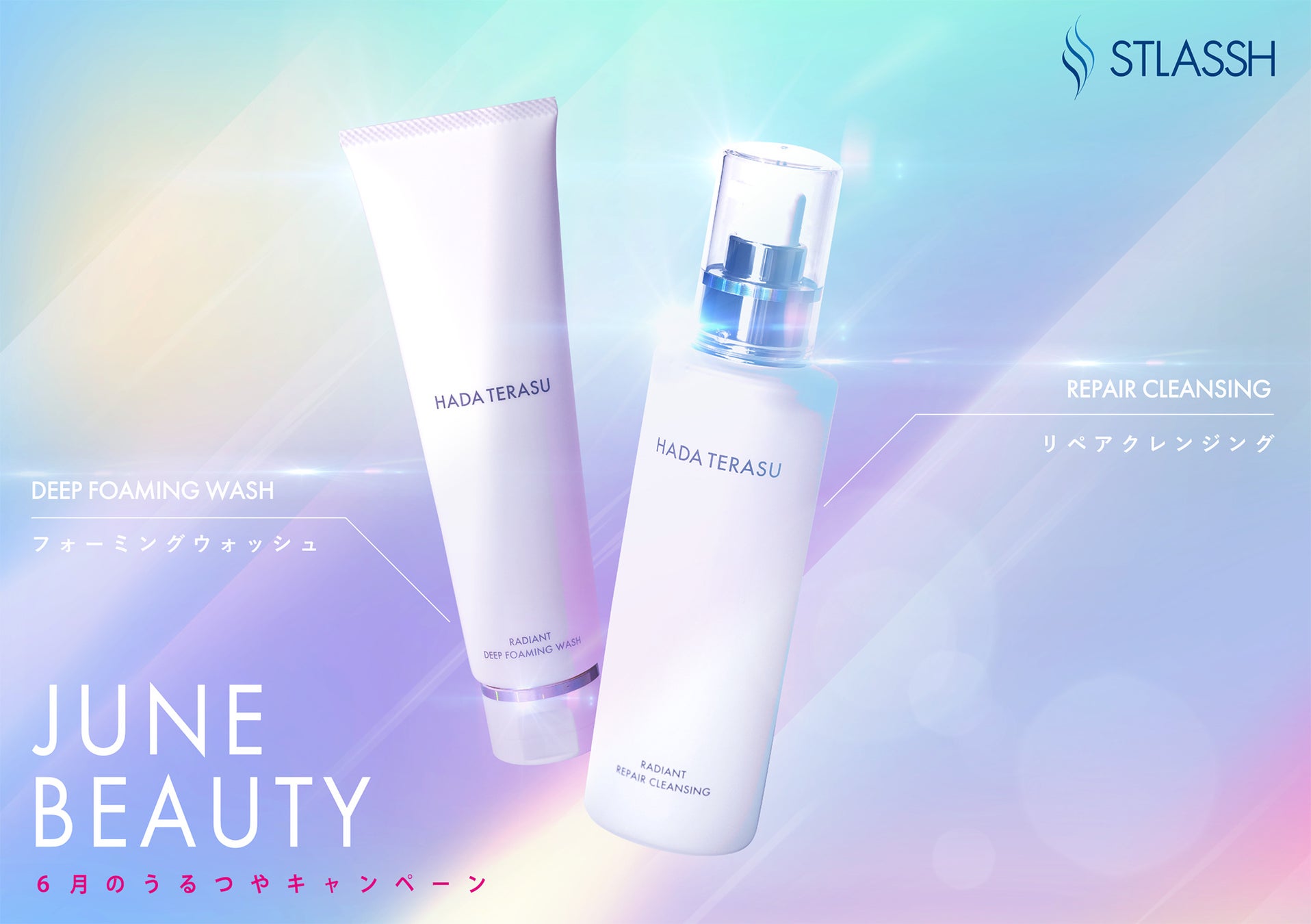 6月は気温や湿度の変化により、肌がゆらぎやすくなる時期。ベタつきと乾燥が気になるこの季節は、スキンケアを見直すきっかけにぴったりです。 脱毛サロン「ストラッシュ」監修のスキンケアシリーズ「HADA TERASU(ハダテラス)」では、季節に寄り添った限定ケアセットをご用意しました。 「RADIANT(ラディアント)」シリーズから、メイクをやさしく浮かせてオフできるクレンジングと、もっちり泡で肌をやさしく洗い上げる洗顔の2アイテムをセットに。EGFやエクソソーム*¹、羊膜エキス*²をはじめとした美容保湿成分を配合し、洗顔後もうるおい感のある肌へ導きます。 現在、6月限定でお得にお試しいただけるキャンペーンを実施中。 肌が不安定になりがちなこの季節、毎日の洗顔からやさしく整えるケアを始めてみませんか。
