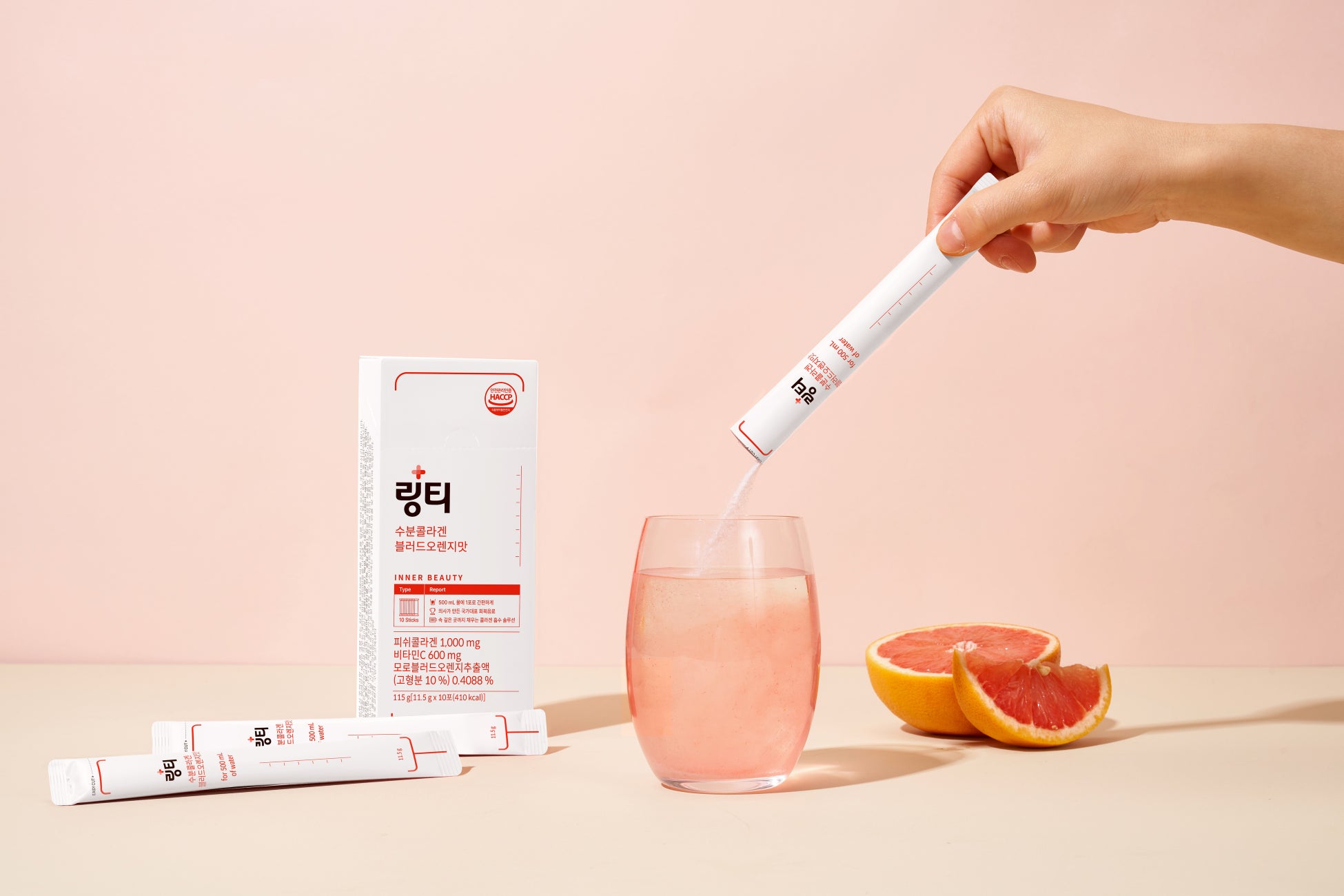水分補給とコラーゲンを同時に摂取できるインナービューティー製品。ブラッドオレンジ味。
