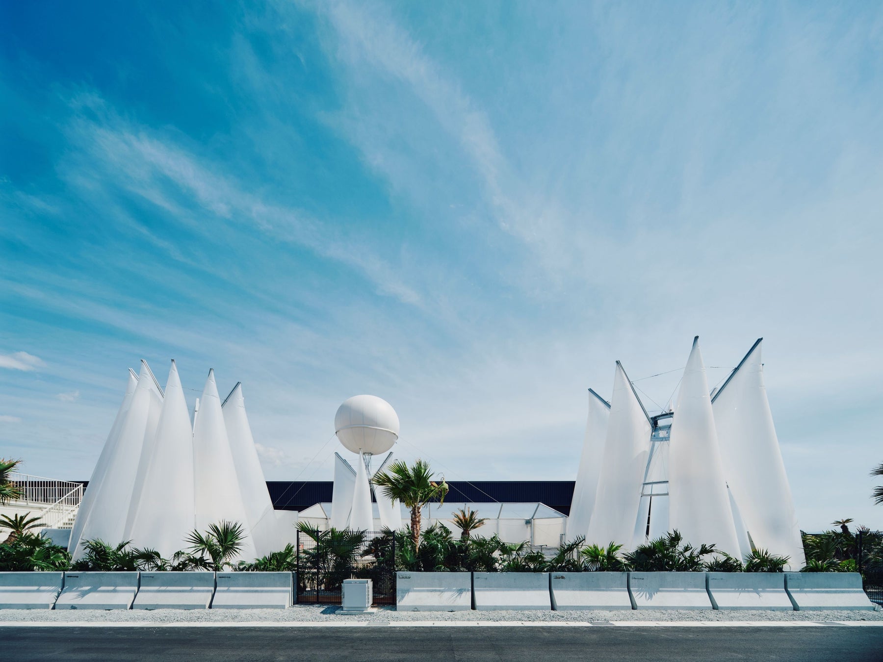 「太陽のつぼみ」は大阪・関西万博のテーマである「いのち輝く未来社会のデザイン」が体感できるサウナです。花びら風の空気膜クッションが集まって一つのつぼみとなり、太陽に向かって伸びていくような生命力溢れる美しい造形が特徴です。太陽のエネルギーが海、草⽊、⾵の空気をまとって「太陽のつぼみ」に降りそそぎます。繊細で⼒強い膜が創り出す空間に、⾃然のエネルギーが満ちていき、私たちの⼼と体を調わせ、⼈としての原点に回帰させていくことをイメージしています。自然光を透過するETFEフィルム膜材に覆われた空間の中で、期間中に約1万5千人の方が水着でサウナを楽しむことができます。