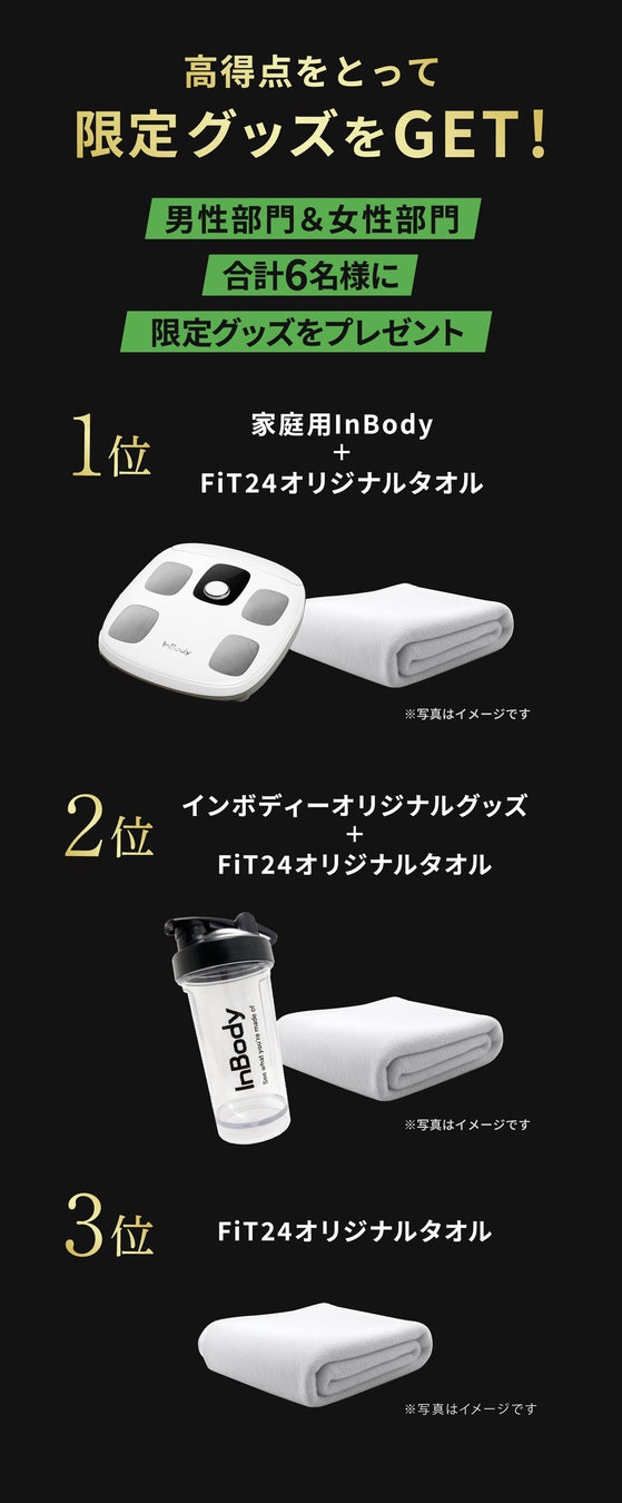 賞品:1位 家庭用Inbody、FiT24オリジナルタオル