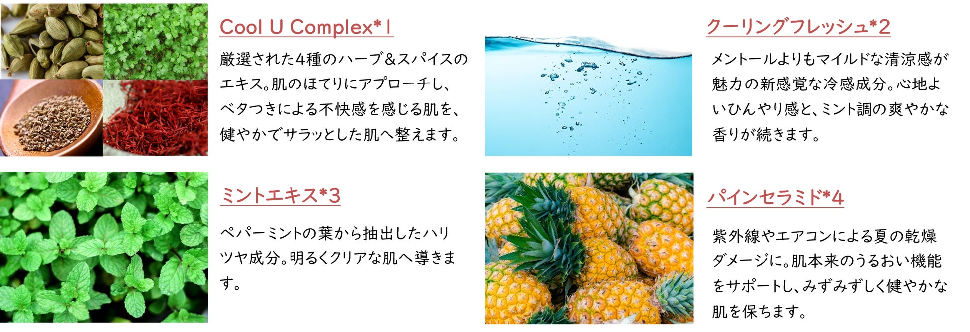 3 ハリツヤ成分 セイヨウハッカ葉エキス 4 保湿成分 パイナップル果実エキス
