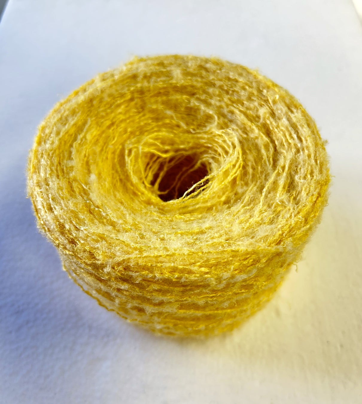 繭から、 ふんわりとして艶やかな天然色の黄色が鮮やかです。
