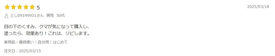 1回のご使用で目元にハリを感じていただけまして、嬉しく思います。