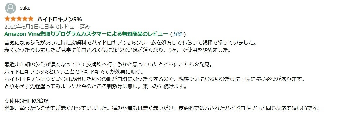 ★saku様、お肌の反応や経過をお知らせくださいまして