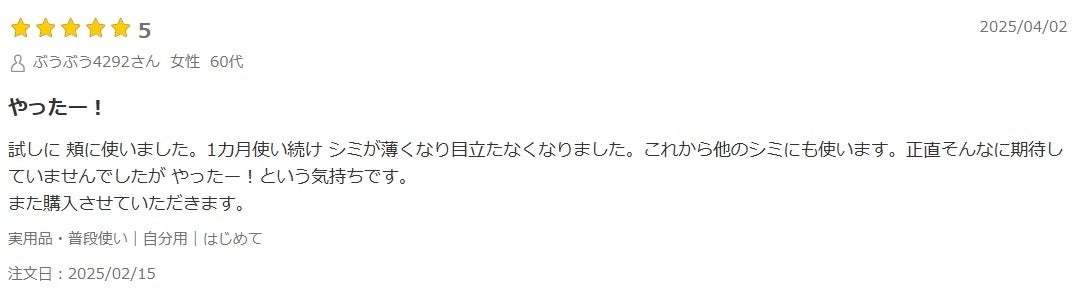 ★ぶうぶう4292様、ありがとうございます。ご期待以上の結果とのことで大変嬉しく思います。