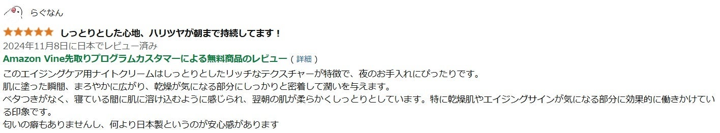 また、エイジングケア用のクリームですので、年齢肌が気になる方にオススメです。