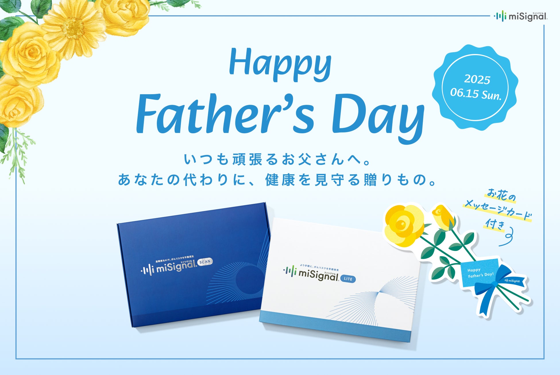 尿がん検査『マイシグナル』を提供するCraif株式会社(所在地:東京都文京区、CEO:小野瀨 隆一、以下Craif)は、2025年6月6日(金)より、6月15日(日)の父の日に向けてマイシグナルを期間限定で特別ギフト仕様で販売いたします。自宅で尿や唾液を採取するだけでがんリスクの早期発見や予防に繋げられる検査キットを贈ることで、日々忙しく働くお父さんに「ありがとう」の気持ちに「ずっと元気でいてね」という想いを添える、新しい父の日ギフトを提案します。