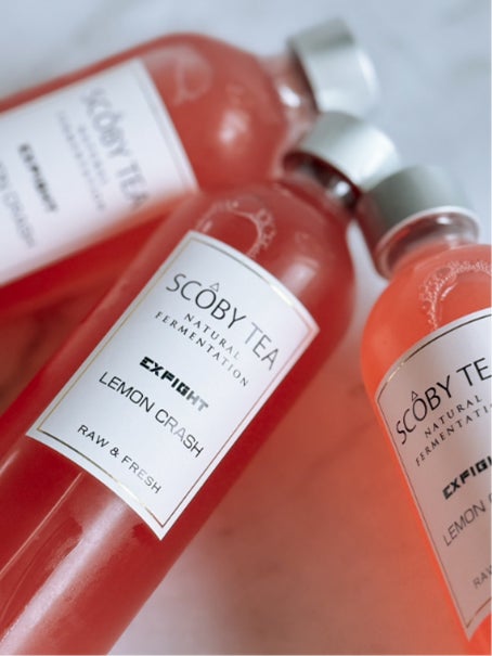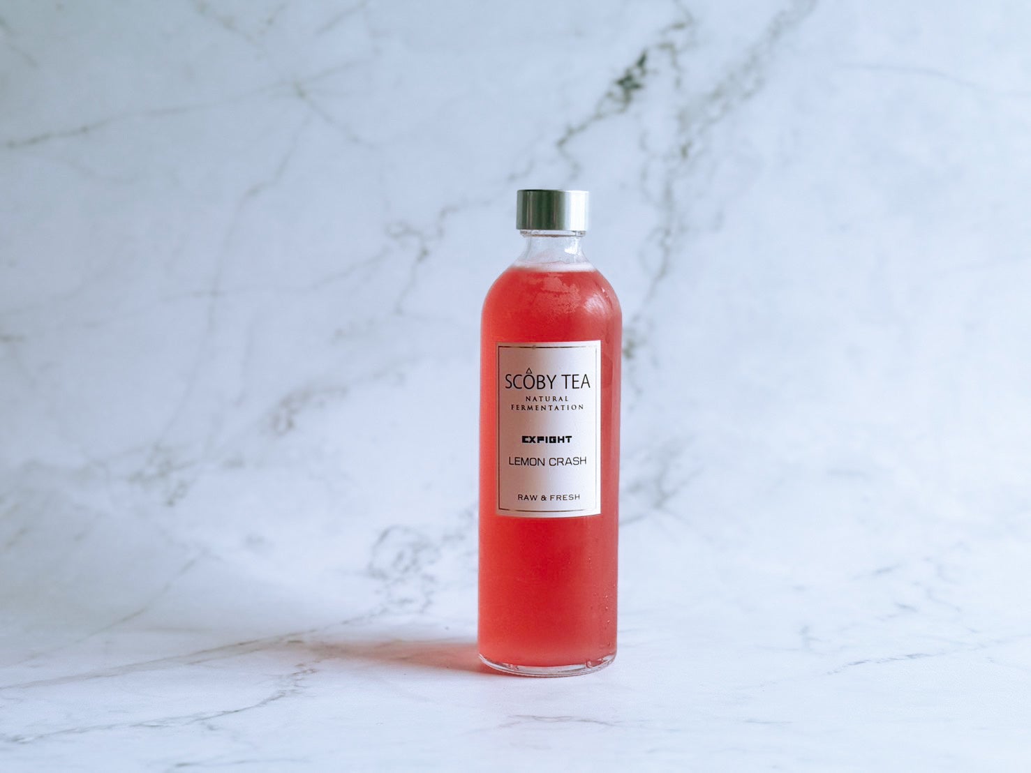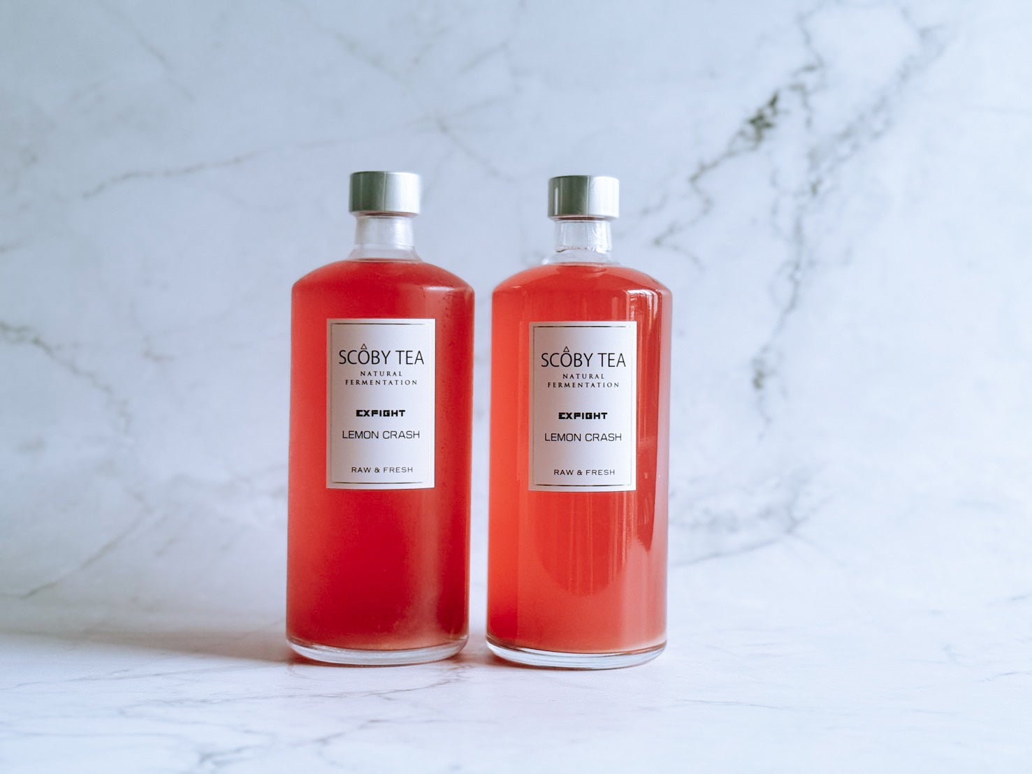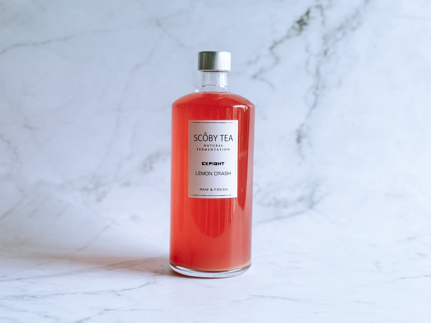 今回のコラボレーションで発売する「LEMON CRASH」は、農薬不使用レモンとてんさい糖だけで作られた自家製レモンシロップに、シチリア産のレモンフルーツジュースを加え、煎茶をベースにSCOBY菌で発酵させました。