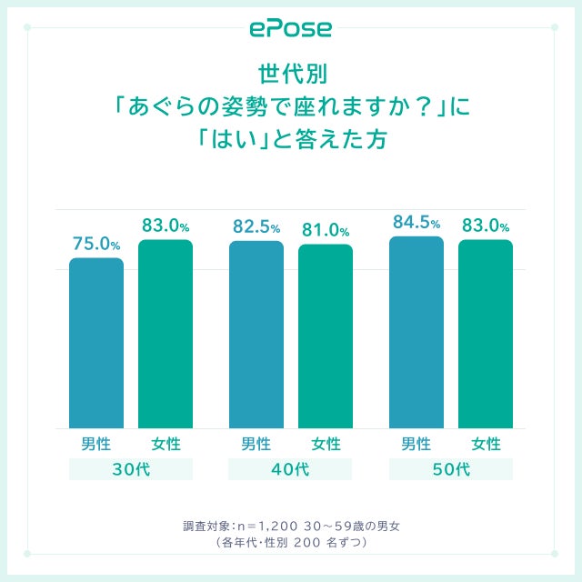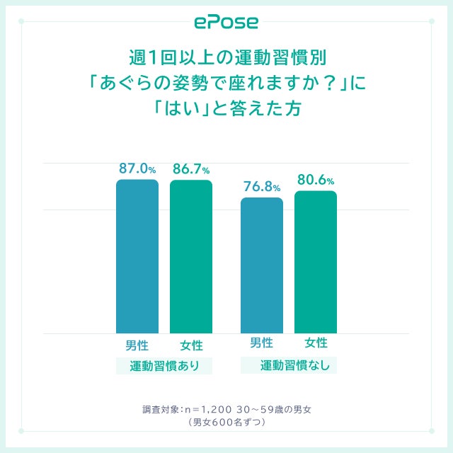 あぐらと運動習慣・年代の関係性について