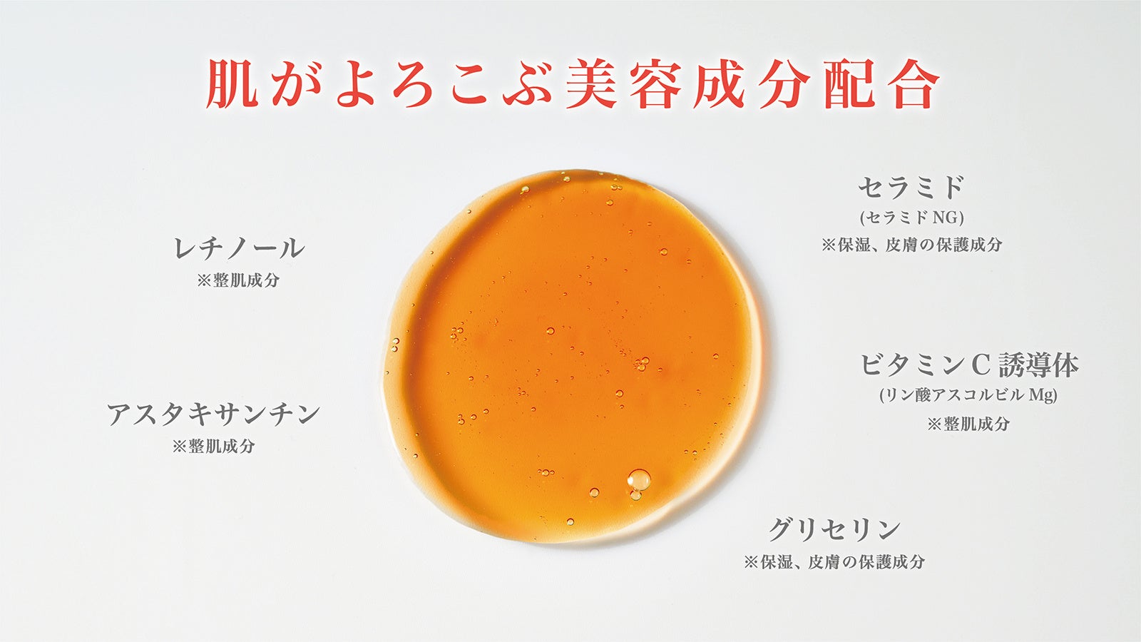 ●レチノール※4、ビタミンC 誘導体※5 が肌に浸透※7し、高い保湿効果を与えます。
