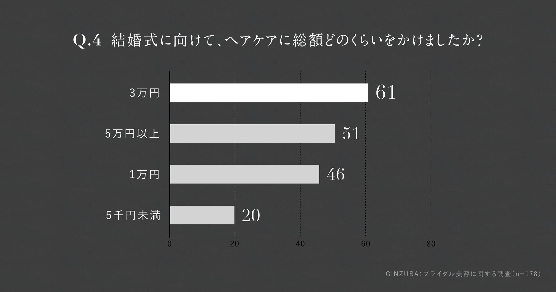 約8割が1万円以上をヘアケアに投資しており、結婚式という特別な日に向けて“髪の美しさ”に対する意識の高さが伺えます。