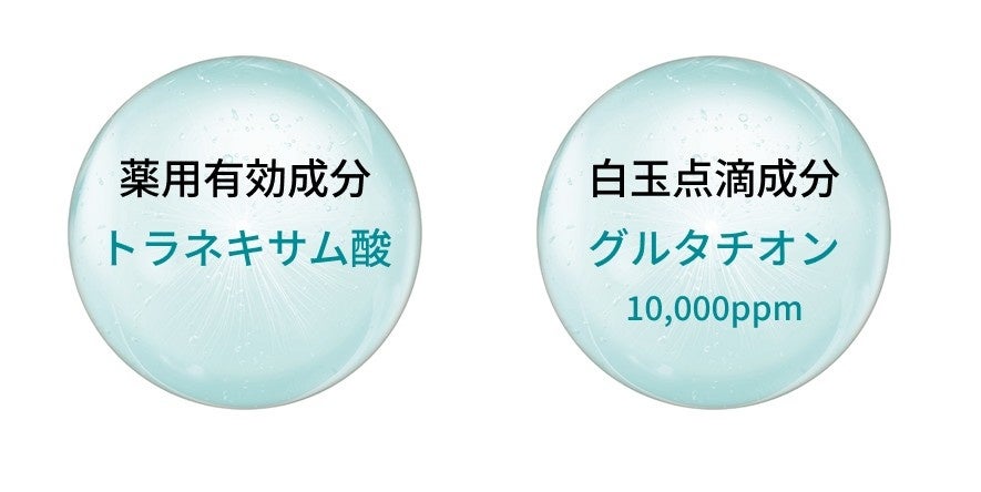 医薬部外品有効成分の「トラネキサム酸(※2)」と美容クリニックの白玉点滴で知られるペプチド成分「グルタチオン(※3)」を高濃度10,000ppm配合した薬用導入美容液。赤みの原因となる炎症を抑え、肌のトーンダウンの要因である様々な肌悩み(色ムラ、くすみ(※4)、赤み、にごり)にピンポイントでアプローチし、均一で透明感(※5)あふれる水光白玉肌へと導きます。