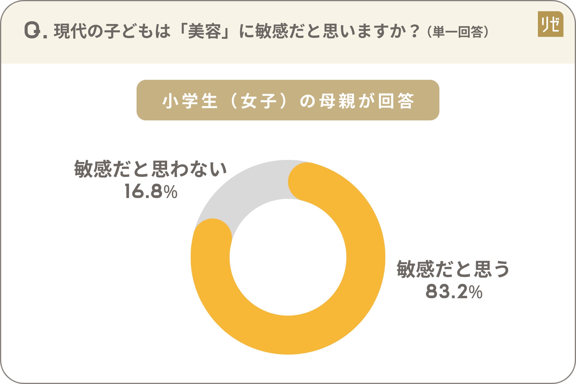 現代の子は美容に敏感か?の問いに、母親の8割以上(83.2%)が「現代の子どもは美容に敏感だと思う」と回答。