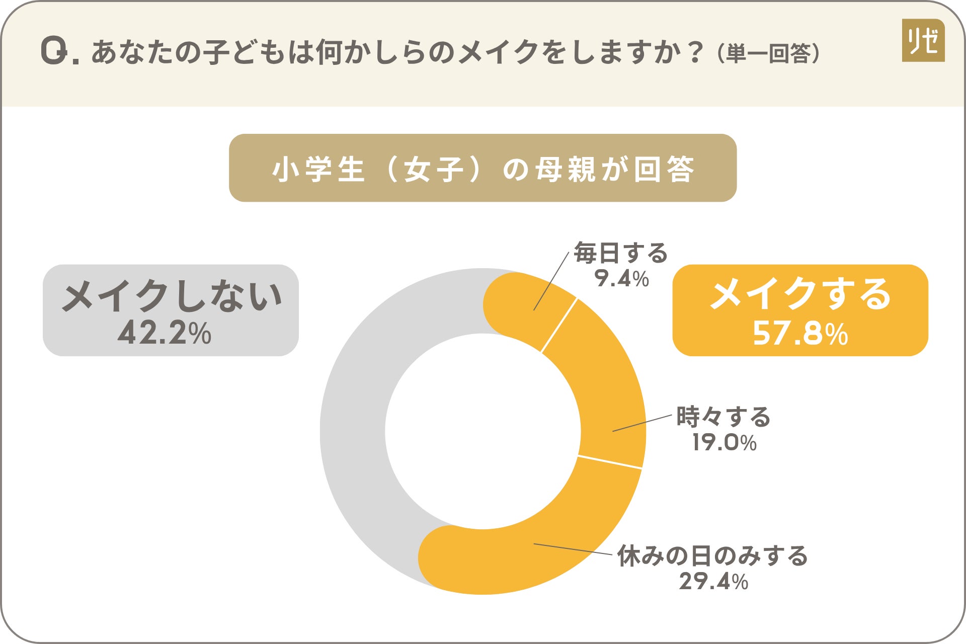 実際に子はメイクしているか?に対し、過半数(57.8%)の女子小学生が何らかの形でメイクをしていることが判明。
