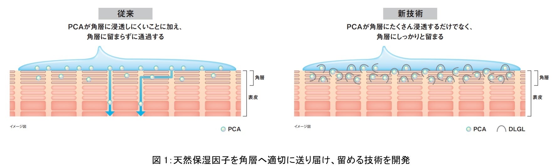 《PCAを角層細胞へ効率的に届け、さらなる保湿効果を発揮していることを確認》