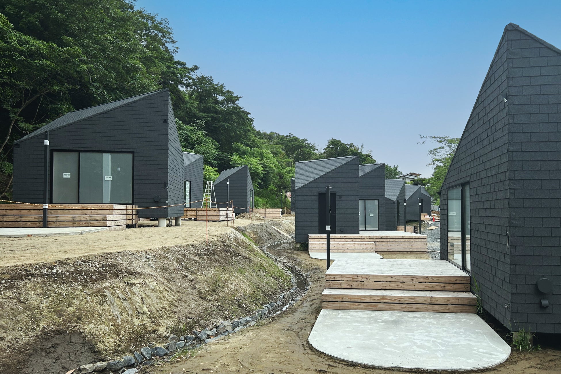 鋸山をモチーフにしたキャビンは、小さな集落のように配置。室内とウッドデッキがシームレスにつながり、まるで自然と一緒に呼吸するような感覚。大きな窓が設置された開放的な空間で、朝日や風、鳥の声を感じながら自分のリズムで過ごすことができます。