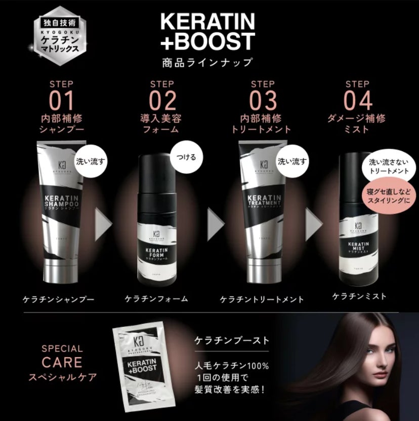KYOGOKU商品の中でも特に人気なのは、ケラチンシリーズです。