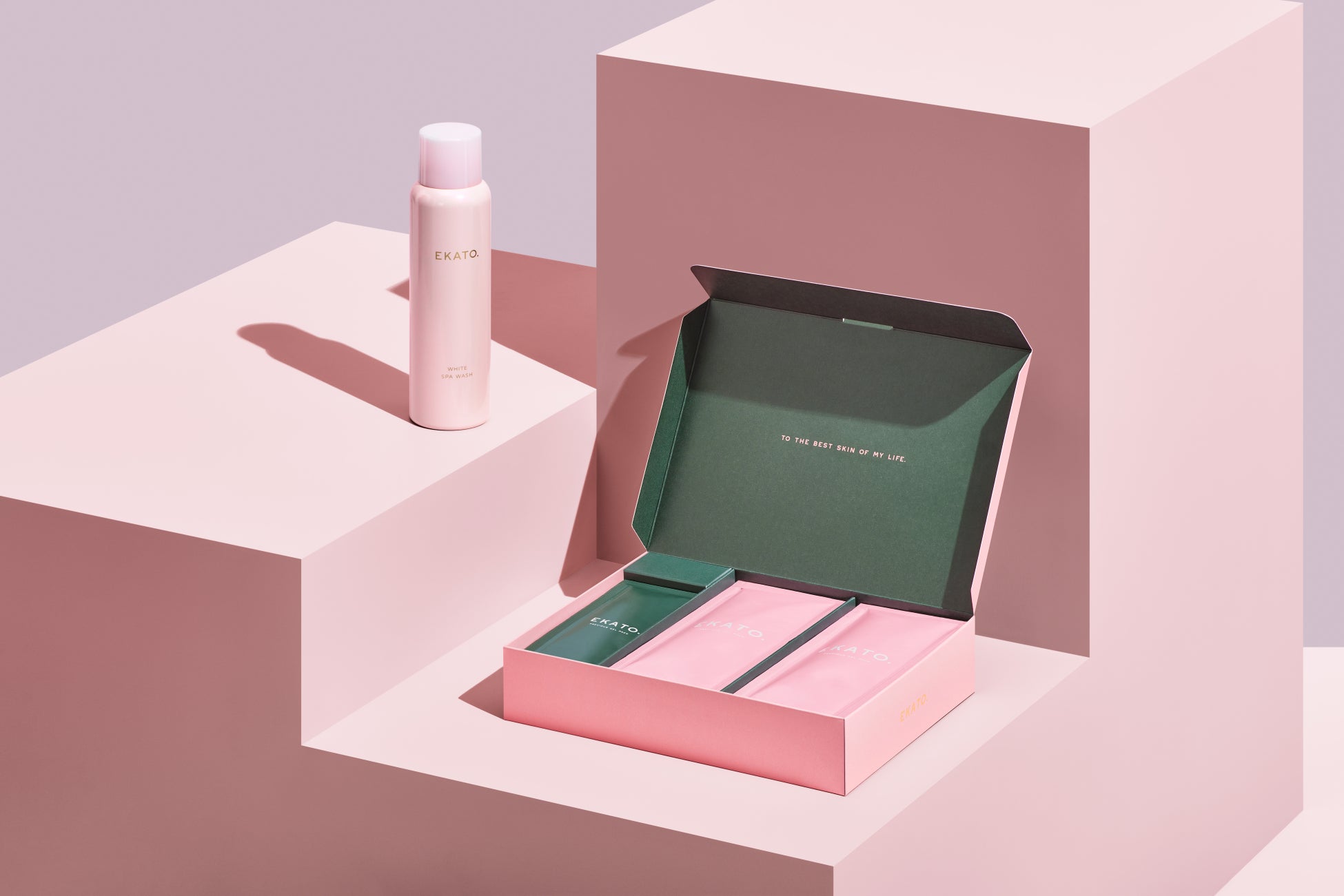 EKATOのアイコニックな炭酸*ケアアイテム *整肌 左)浮かす、巡らす、整える。1分間の泡パックを叶える ホワイト スパウォッシュ 右)プレシャスジェルパック