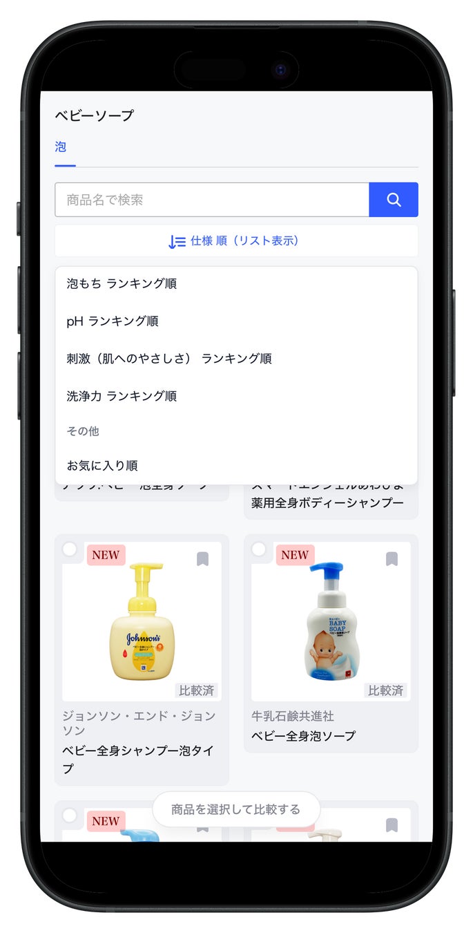 ユーザーは「自分が重視する基準」を選ぶだけで、各商品をその評価順で一目で比較できるようになりました。比較体験の精度とスピードを高め、“本当に求める条件に合う商品”にスムーズにたどり着けます。