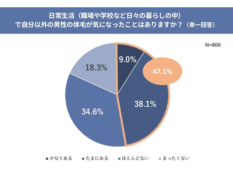 ■男性の約5割が”自分以外の男性の体毛”が気になった経験があると回答。