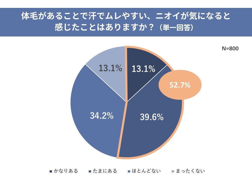 ■52.7%の男性が体毛があることで、汗でムレやすい、ニオイが気になったことがあると回答