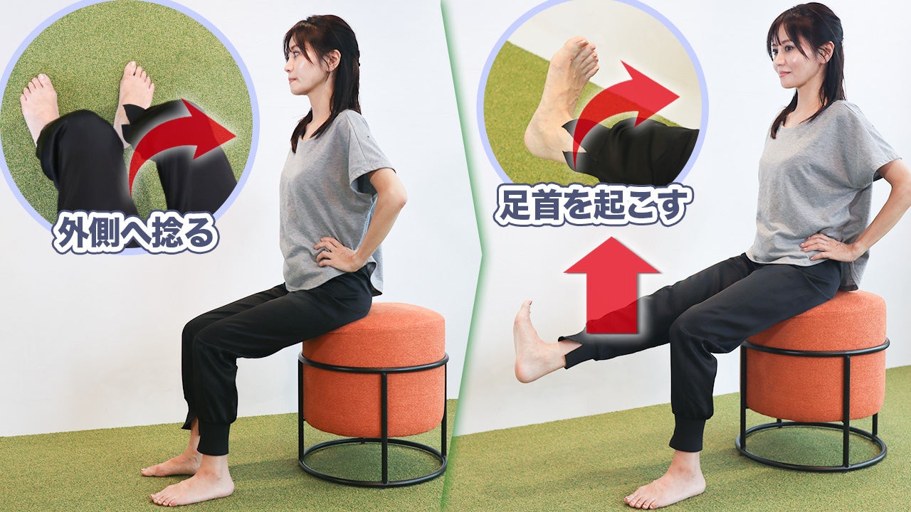 ③その状態からつま先を起こしたまま膝を伸ばしてキープする、10秒×3セット
