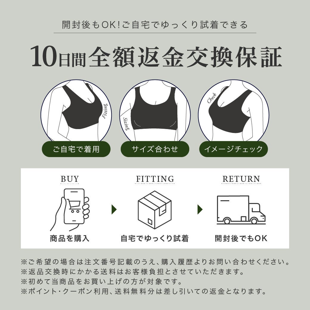 ゆっくり試せる10日間の全額返金・交換保証付きです。