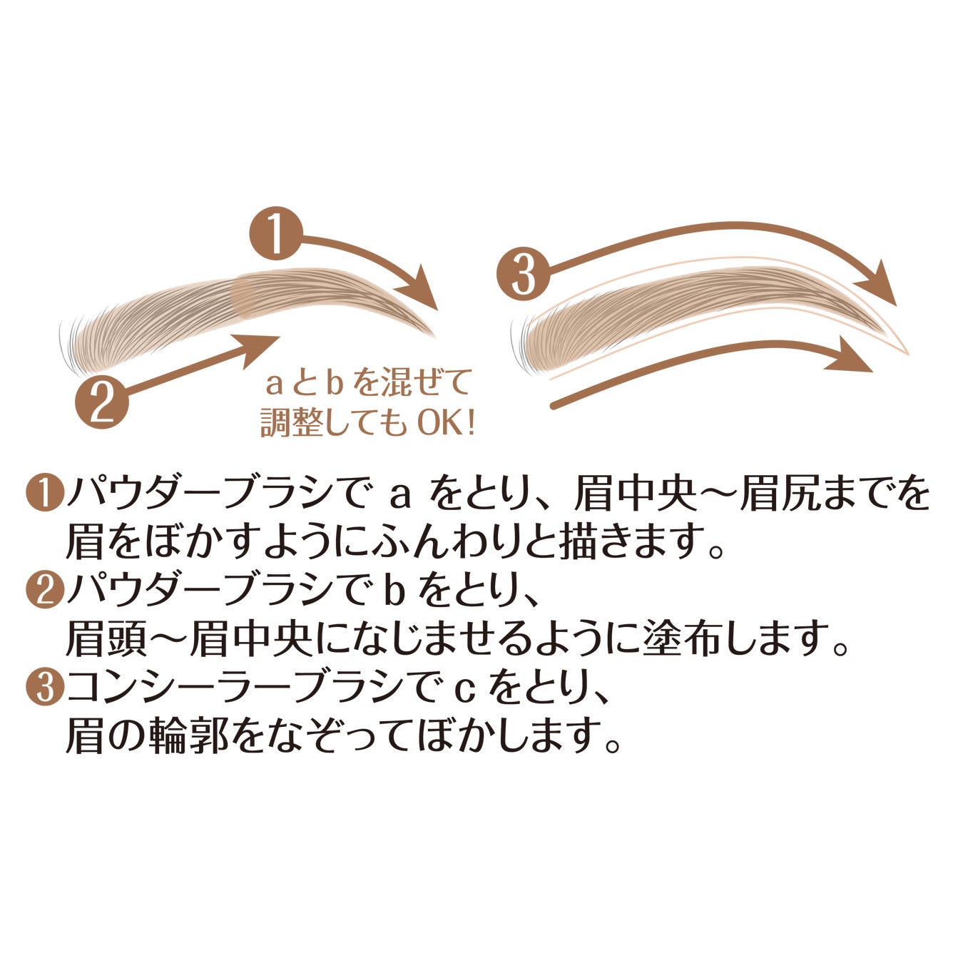 眉頭のぼかしもテクニックいらずで、誰でも簡単にふんわり質感の眉に仕上がります。