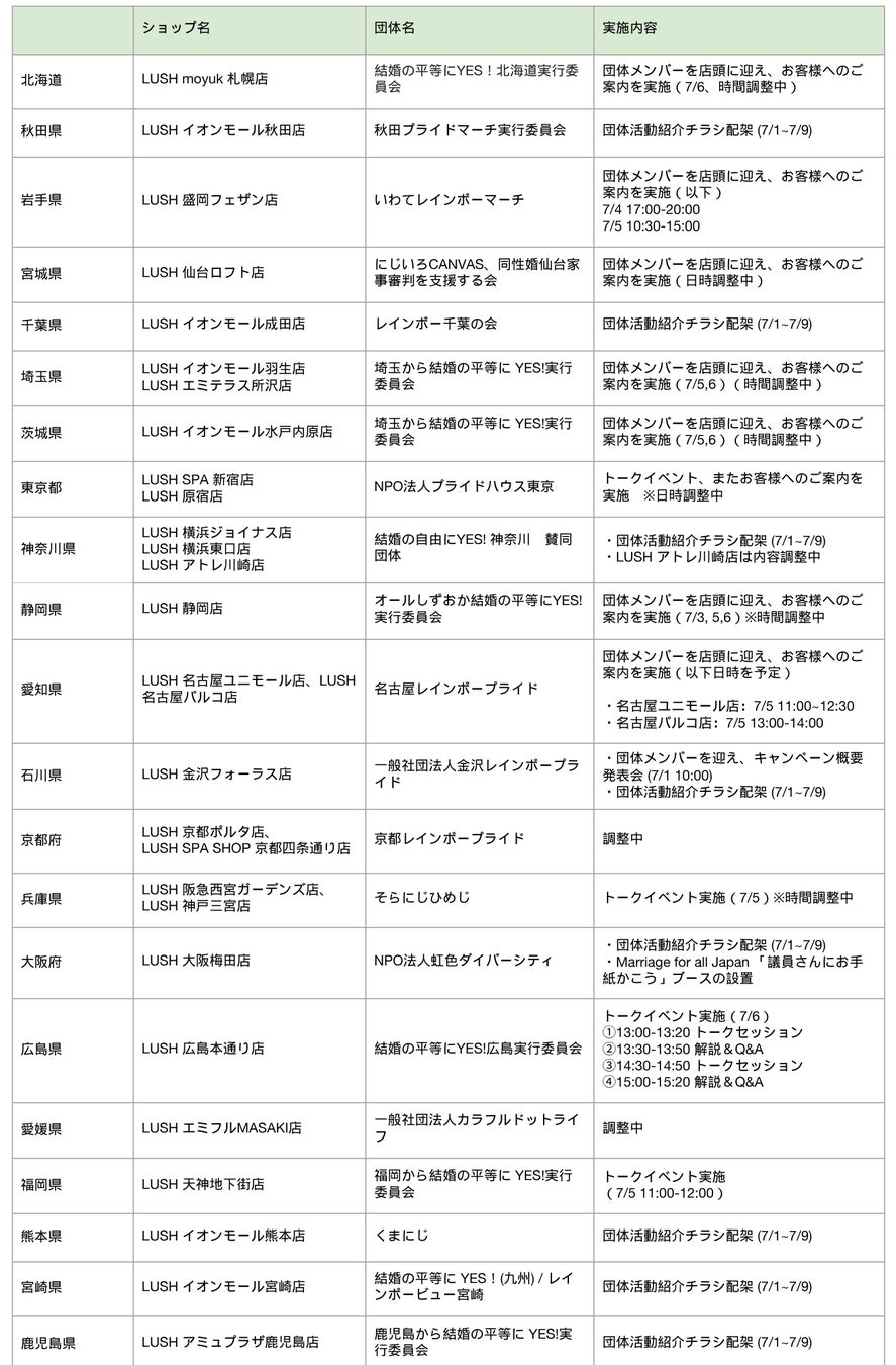 本キャンペーンでラッシュは、マリフォーが行う全国横断アクション・キャンペーン「結婚の平等にYES!」と連携する合計25地域のうちラッシュのショップが存在する21地域で、LGBTQ+の支援を行う草の根団体と共に、各地域に暮らす人々に婚姻の平等に関する啓蒙活動を行います。各ローカル地域のラッシュの店舗をハブに、その地域で活動する草の根団体を来店するお客様に紹介する機会とすることで、地域コミュニティの繋がりを作るほか、婚姻の平等を願う当事者は都市部のみならず、各地域にも存在するという事実を伝える機会とすることで、日本全国横断的に婚姻の平等の意味を考える機会を作っていきます。