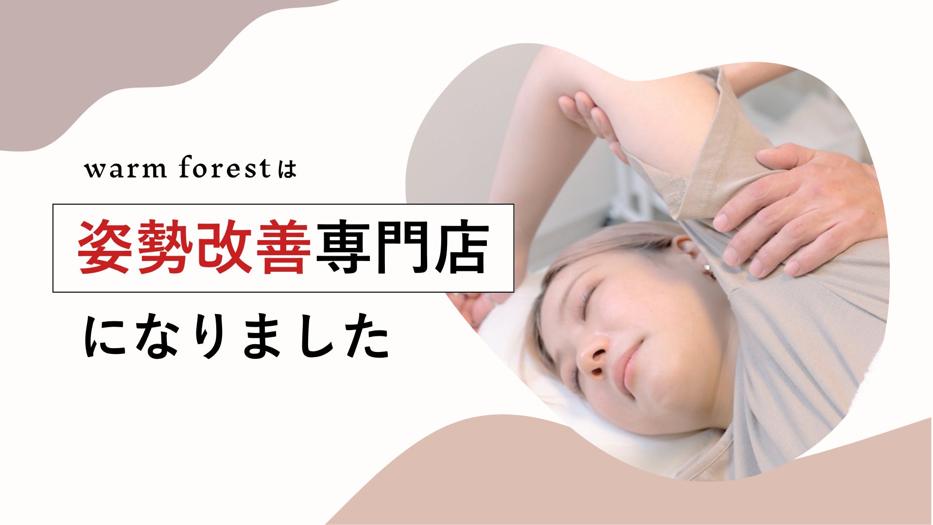 このたび整体サロンwarm forestは、「姿勢改善専門店」として新たな一歩を踏み出しました。