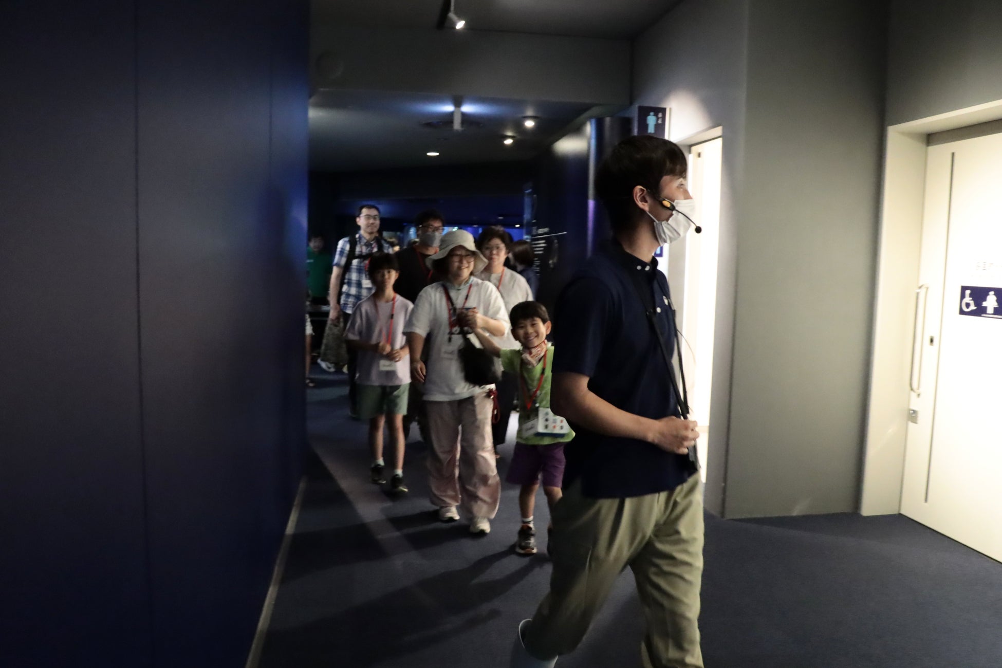今年で2回目となる本イベントでは、新江ノ島水族館のご協力のもと、閉館後の水族館で、普段は公開していないバックヤードを特別に見学するツアーを実施しました。このツアーでは、魚たちが展示されるまでの過程や、日々の健康管理、“もしも”の時の対応方法などを、飼育スタッフの案内で間近に見学。 たとえば、海から運ばれてきた魚はまず「検疫(けんえき)」で病気にかかっていないかを確認し、元気であれば館内で与えているエサに慣れさせてから展示されるとのこと。ケガを負った魚はバックヤードの専用水槽で治療を受け、回復を待ってから再び展示に戻されます。