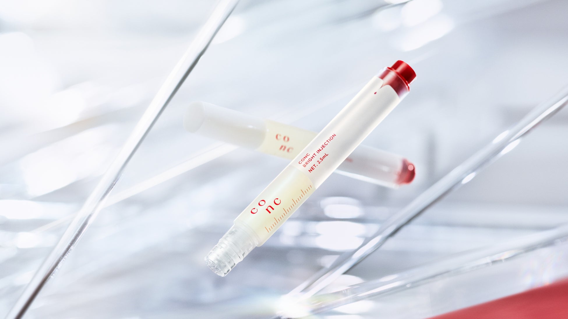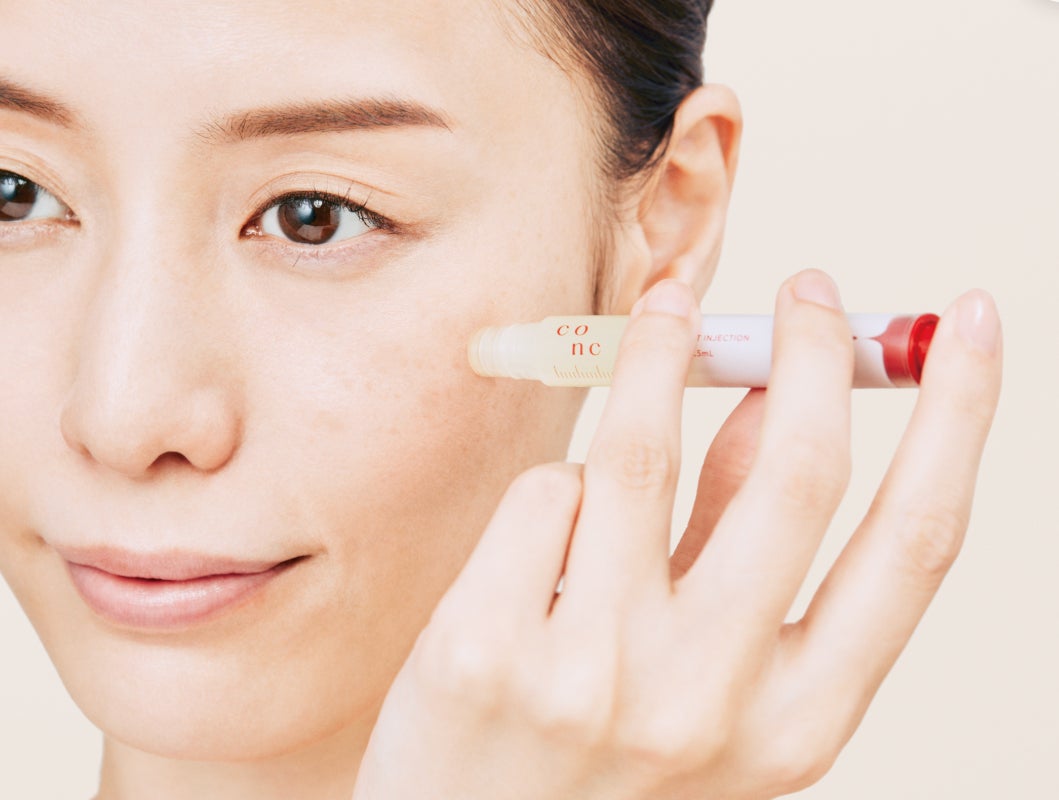 「CONC ブライト インジェクション」は、年齢とともに気になるくすみ※4や乾燥小じわの目立ち※5、凹凸影などの肌悩みに直接狙ってアプローチする、“ノック注入※1型”マイクロニードル美容液です。