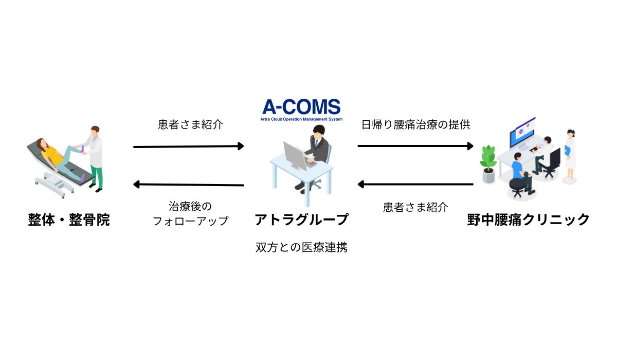 医療法人蒼優会 野中腰痛クリニック、東証スタンダード市場上場のアトラグループ株式会社との医療連携開始について