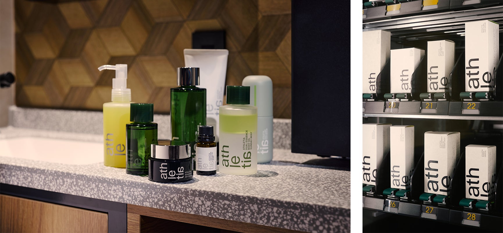 athletiaはキングルーム・クイーンルーム以上のお部屋に、ヘアケアアイテム及びハンドウォッシュ・ボディシャンプーをご用意。予約制の貸切サウナでは、スキンケア製品一式を自由にご利用いただけます。また施設内自動販売機では人気アイテムの「コアバランス オイル」を中心に全11アイテムを販売しております。BASE LAYER HOTELでのお取り扱いを開始することで、ビジネストラベラーやカルチャーに関心のある方など多くの新たな出会いを期待します。