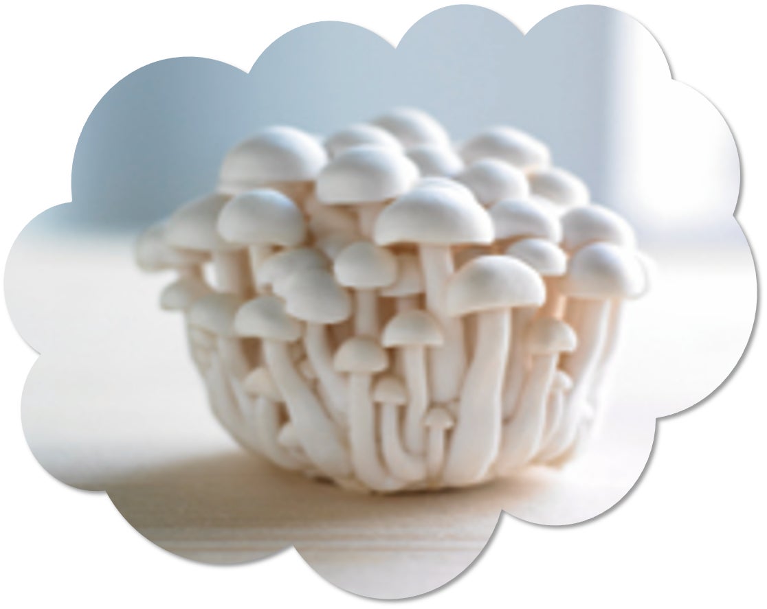 ブナピーは、ブナシメジの色の白いもの同士を交配して誕生したホクトオリジナルのホワイトブナシメジです。“プルン”とした歯応えと“ツルン”とした喉ごしが特長です。料理の彩りにブナピーの白を加えることで一層爽やかになり、サラダや冷やし麺、カレー、鍋、デザートなど様々な料理と相性が抜群です。