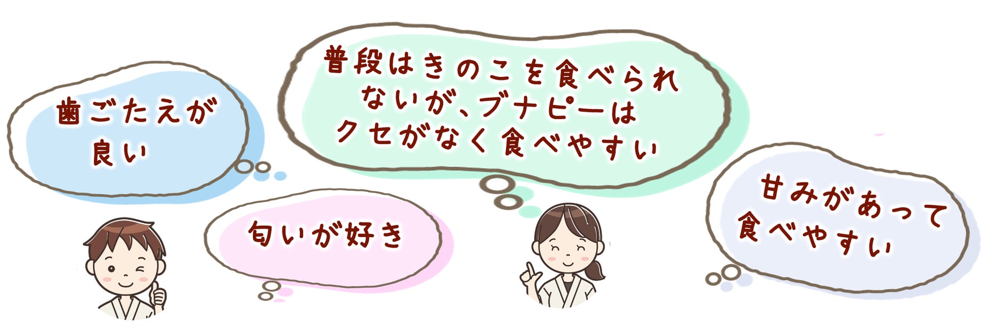 育ち盛りの小中学生(男女111名)を対象にブナピーと他社ブナシメジの食べ比べ調査を行ったところ、