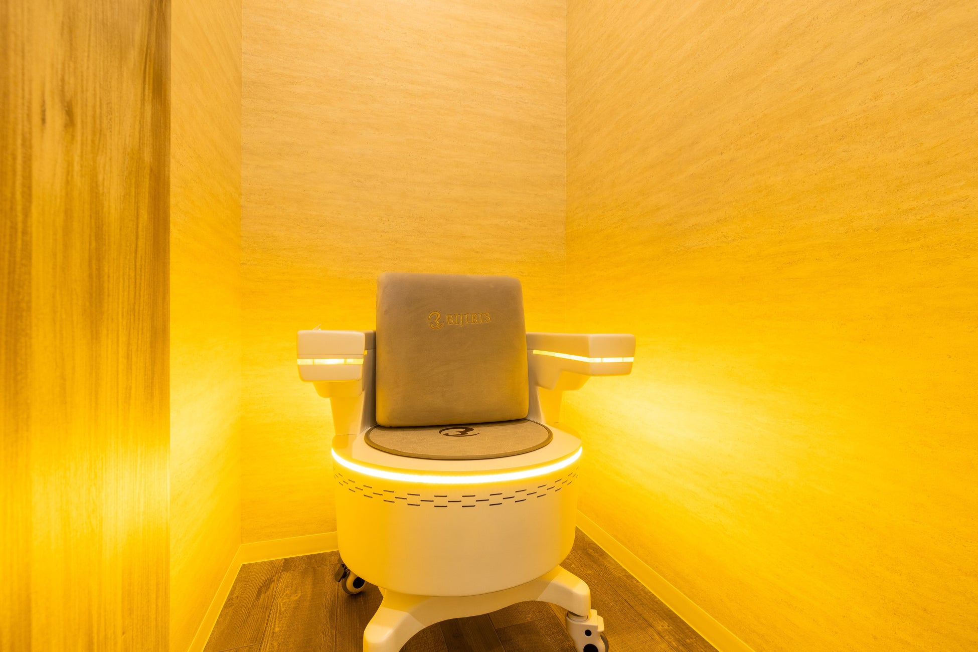 服を着たまま座るだけで「筋肉+脂肪」両方にアプローチできます。なかなか鍛えることのできない骨盤底筋や下半身を電磁パルスの刺激で座るだけで鍛えることができる美容マシンです。