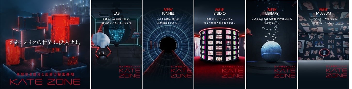 「秘密基地」をコンセプトとした空間には、「LAB」「LIBRARY」「TUNNEL」「STUDIO」「MUSEUM」の5つのゾーンに分かれており、メイクにまつわるあらゆるデータ、ユーザーたちのリアルな声、さまざまなテクノロジーによって、新しい自分に出会える体験を可能にした没入体験型ECストアです。